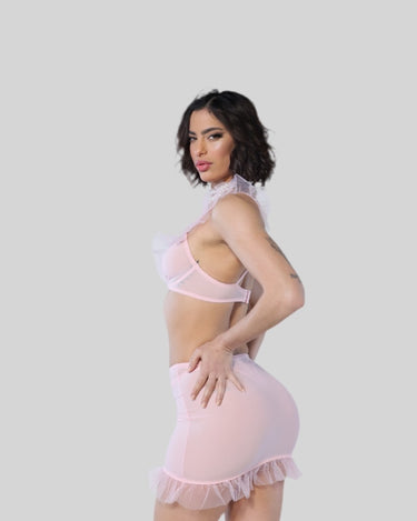 This sophisticated silk set with frilly sleeves will envelop you in elegance. Paired with a pair of pantyhose and a glamorous skirt, its design is designed to make you feel powerful and comfortable at the same time.