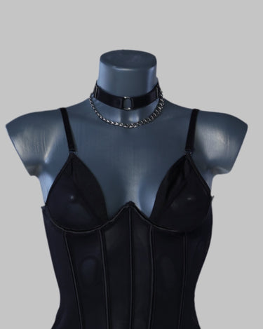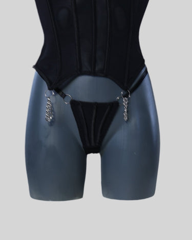 Let yourself be enveloped by mystery and sensuality with Selene, a sophisticated lingerie set designed for women who radiate confidence and power. This stunning set includes a transparent black corset, crafted with fine details that elegantly enhance the silhouette.