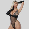 Bodysuit with rose embroidery and lace at the waist, enhancing the silhouette with elegant details and a perfect fit.